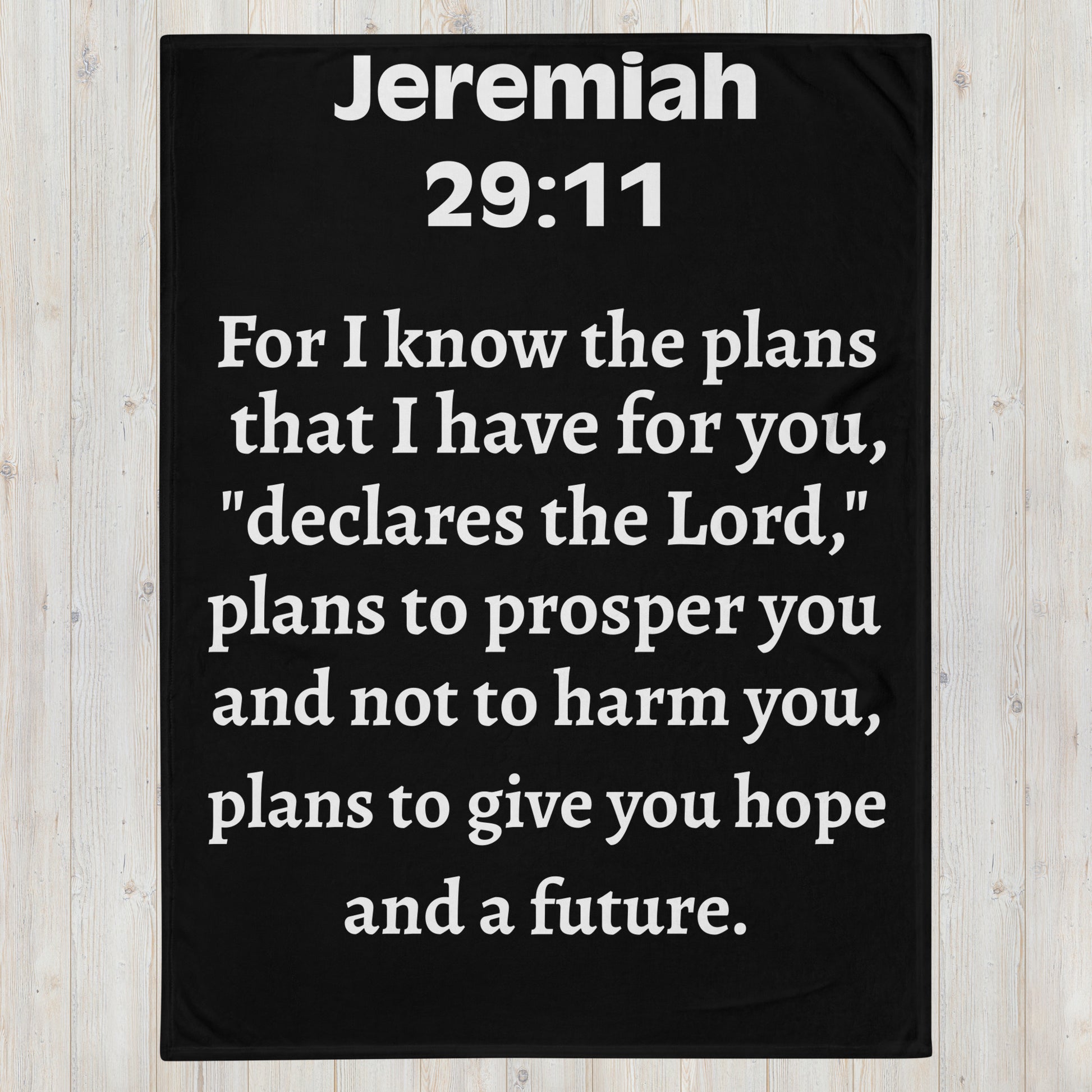 *Inspired by one of Scripture's most powerful promises—"For I know the plans I have for you, declares the Lord, plans to prosper you and not to harm you, plans to give you hope and a future"—this blanket serves as a daily reminder of God's unwavering love and divine purpose for your life.